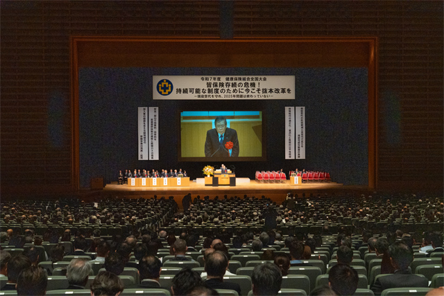 健康保険組合連合会は10月22日、東京国際フォーラムで令和7年度健康保険組合全国大会を開催しました。テーマは「皆保険存続の危機!持続可能な制度のために今こそ抜本改革を─現役世代を守れ、2025年問題は終わっていない─」であり、全国の健保組合関係者約3,000名が来場し、ウェブ配信で約2,000名が視聴しました。