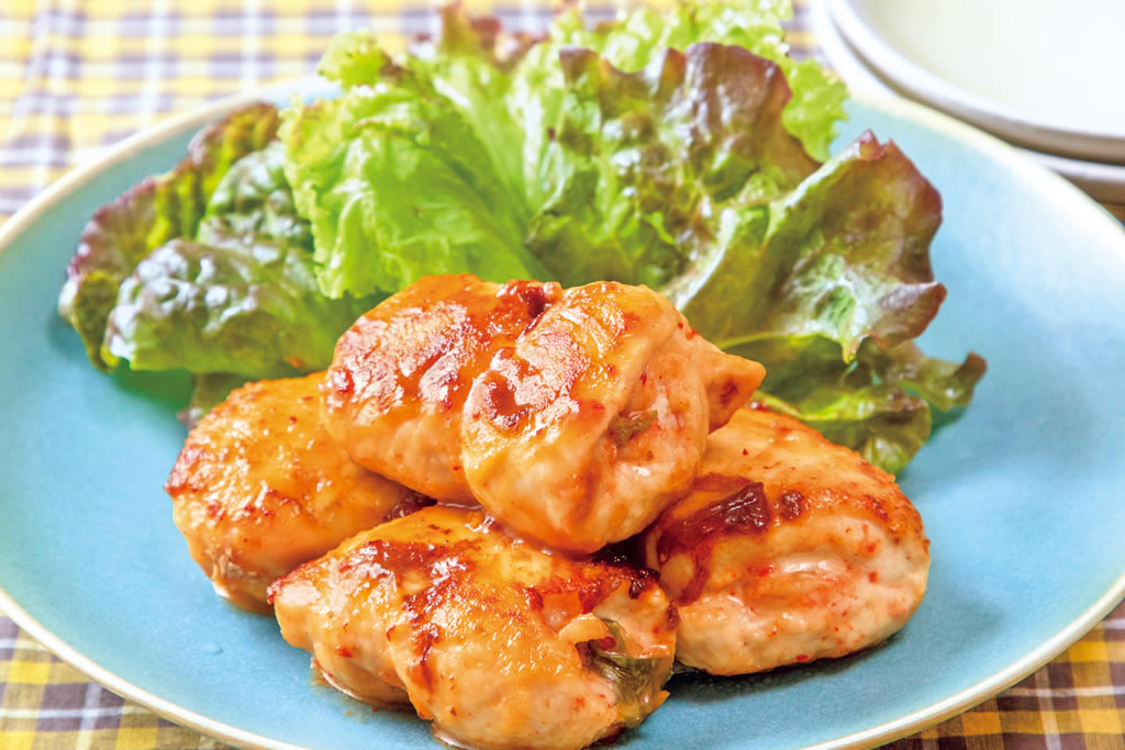 チーズを加えて手軽にカルシウムアップ! ピリ辛キムチとチーズのまろやかさが鶏ささみ肉によく合います。