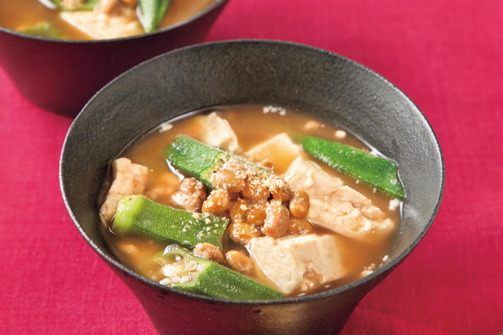 納豆、おくら、木綿豆腐からカルシウムがとれ、からだも心も温まるスープです。