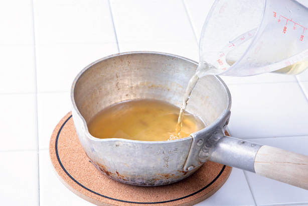 - 鍋にAを入れて沸騰させ、火を止めて冷ましてから酢を加える。